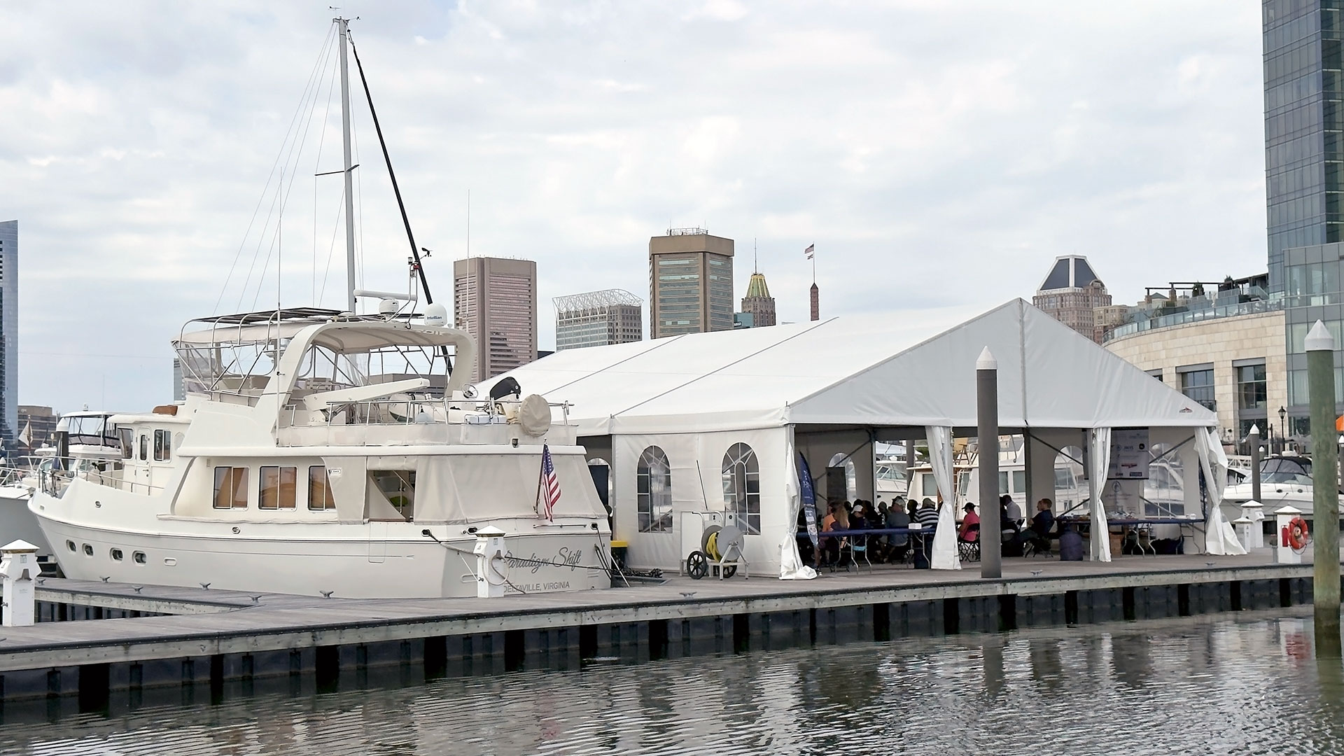 The 2025 East Coast Selene rendezvous was held at the Baltimore Inner Harbor and timed to coincide with the Trawlerfest that followed. I arrived early and met with Troy Irwin aboard his new to him Selene 57, Excalibur, a trawler that I had helped he and his wife, Debbi purchase in a private sale through JMYS a few weeks prior. We did a short jaunt from their home marina a mile or so away and arrived at the event greeted by the staff who tied us up. We went over to check in and see many new and old friends as the gathering began.