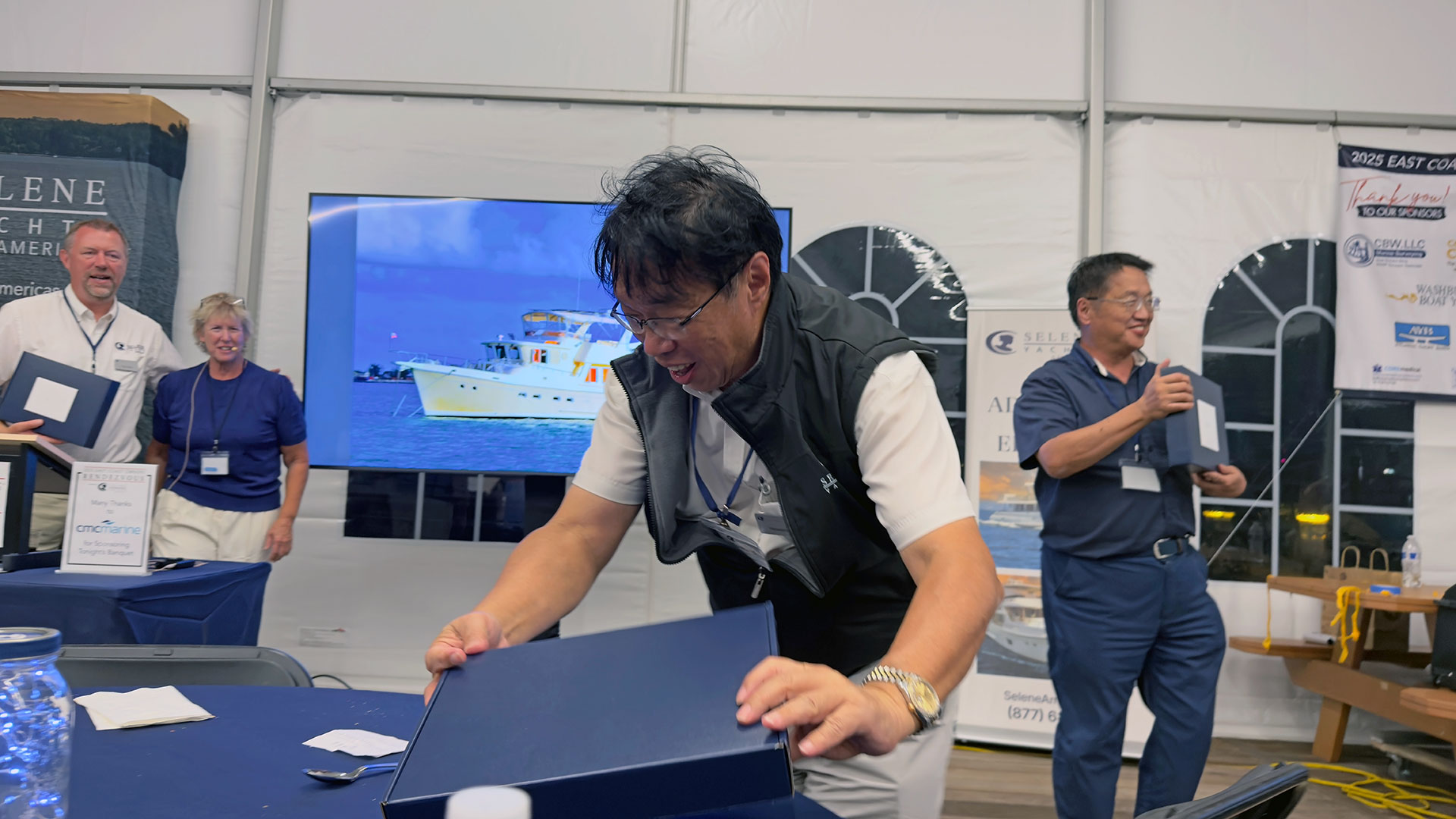 Several group discussions were held in the large dock tent; many included the Selene Americas team. Everyone loves to hear Howard Chen present, he is such a brilliant person, very personable with a sense of humor – I enjoy when I get a chance to talk trawlers with him.