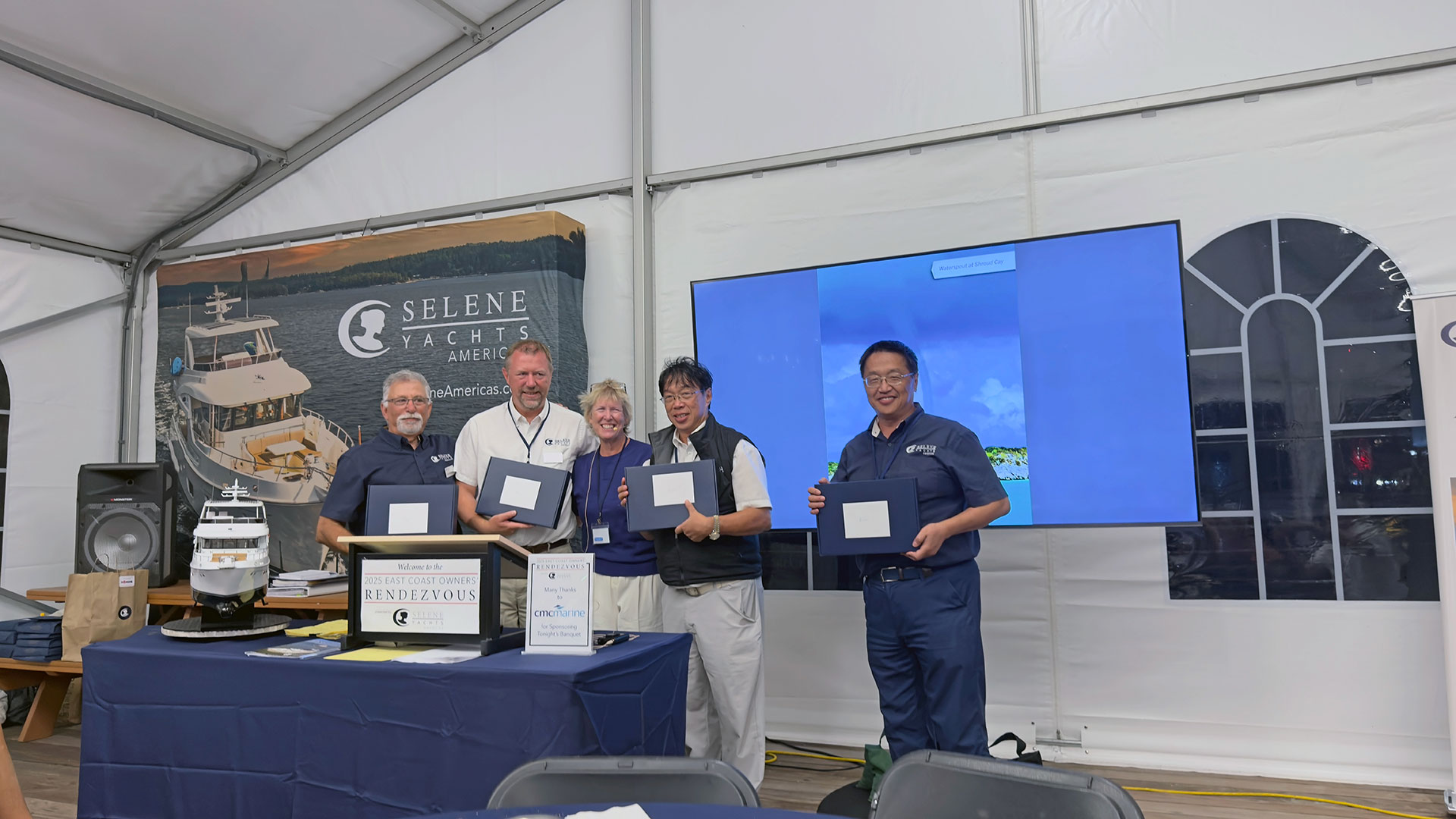 JMYS has been a proud sponsor for the last few Selene rendezvous, but the real stars of the show were the boats and the people. It is an enormous feat to organize 25 trawlers and 10 visiting boat owners to convene at one location to celebrate the Selene brand. I would like to acknowledge and thank the two chairpersons, Glenda Groome and Robin Newland, who along with their spouses have done an incredible job organizing this event for the last couple of years. There were many highlights this year, our most notable dignitary was the founder of Jet Tern Marine, Howard Chen the builder of Selene. Howard along with his brother Michael Chen and the dynamic team of Wayne Goldman and Paul Cifka, are the driving force behind Selene Americas and they have done an incredible job of bringing the Selene brand back into prominence.