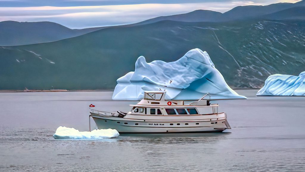 They crossed with a crew of six, including their 16-year-old grandson, a close friend from Northern California, and their four-year-old Australian Shepherd, Bear. Most of the crew joined in St. John’s, Newfoundland. The photos were taken in the fjords of Greenland, where Cynthia captured the moment while Mike kept watch, navigating icebergs and keeping Golden Days safe.