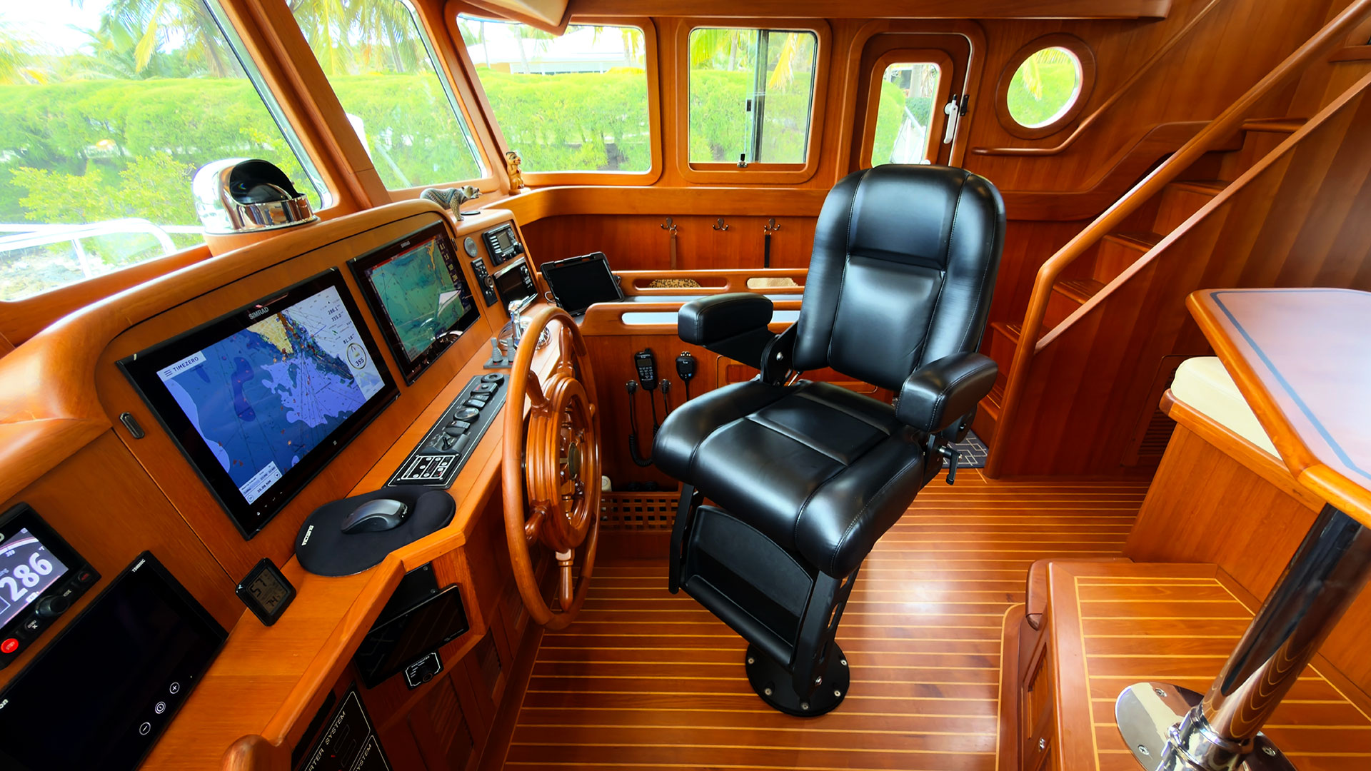 She was originally based in the Pacific northwest and became an amazing auction opportunity (sight unseen) that her second owners couldn’t pass up. They upgraded and outfitted in Washington and after a summer enjoying Alaska cruising, they embarked on a great adventure, sailing her around to the US east coast through the Panama Canal. During their stewardship many notable improvements have taken place, two that top the list are the addition of air conditioning and painting the hull. The hull was painted in Stuart, FL in late 2023.